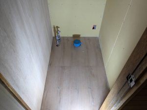 ・今回は床材をはがすことになったので排便管を200㎜の位置に移設し、床材・壁材を貼付け